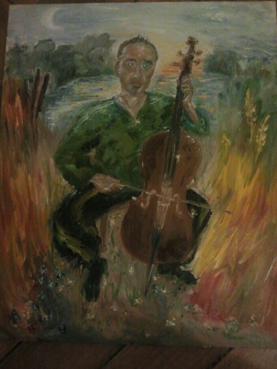 Die Voraussetzungen für die Ausschüttung von Glückshormonen sind gerade also gar nicht so schlecht. Wie ich es nach Sankt Petersburg schaffte, wird der Leser dieses Textes zunächst nicht erfahren. Nach Baden Baden brachte man mich mit einem Minibus und nun bin ich da; in einem durchschnittlichen Hotel mit wohlklingelndem Namen. Ich floh vor dem Mann, der auf dem Gemälde zu sehen ist. Ich hatte Angst vor ihm. Ich wollte nicht, dass er weiter immer das gleiche Spiel spielt. Ich musste nach Baden Baden, weit weg von diesem Mann, der da nicht mehr frisch-ölig, sondern trocken-matt von der Leinwand schaut; der da für alle Ewigkeit hängt. Dieser Mann – das bin ich. Ich sitze auf einer Wiese und spiele virtuos Cello. Rechts und links wächst das Getreide – flammig rot; heiß-fressend; wärmespendend-grausig. Weit und breit ist niemand zu sehen; eine erschreckende Menschenleere; eine erlahmende helle Nacht beschäftigt mein Gehirn, das all die Informationen in die Hände, die die Befehle des Gehirns musikalisch darstellen, leitet. Es ist eine disharmonische Musik, die ich da spiele; es ist eine zaghafte Musik. Glücksmomente und deren Ausbrüche werden von Ängsten abgelöst; der brennende Wille erklingt und verklingt und an seiner Stelle treten leise Töne der willenlosen Betäubung. Ich bin das – auf diesem Bild. Es ist erschreckend mich so zu sehen, mich hängend zu betrachten, mich hängen zu wissen. Und gleichzeitig erfüllt mich das mit Stolz und mit Glück, gemalt worden zu sein, mit viel Zärtlichkeit dargestellt und genauso aufgehängt. Nun, ich will ein anderer sein, ich will anders spielen, ich will anders leben und deshalb bin ich jetzt in Baden Baden. Ich durchstreife die Wälder in der Suche nach mehr Licht und mehr Erkenntnis. Ich vertiefe mich in die Meditation in der Hoffnung auf Ausgeglichenheit. Ich lasse mich in den Thermen vom Wasser umhüllen – als Schutz vor Scheitern. Ich faste, ich lese, ich betrachte die Kunst und denke nach. Ich bin dabei mich zu erneuern, mich neu zu erfinden, mich ganz tief und nachhaltig zu formen; ich bin dabei zu leben, zu träumen; ich bin auf einem anderen Weg und vielleicht auch deshalb wurde ich gemalt, mit Ölfarben für immer gemalt. Vielleicht bin ich jemand, der deshalb gemalt wird, weil er sich bewegt, weil er lebt, weil er sich hasst, weil er seine Fehler demütig zugibt. Vielleicht deshalb hänge ich nun in Sankt Petersburg und vielleicht deshalb suche ich einen Weg in Baden Baden, erfinde ich mich hier neu, denke über mich nach. Ich bin verortet, ich war immer schon verortet. Ich komme vielleicht an.