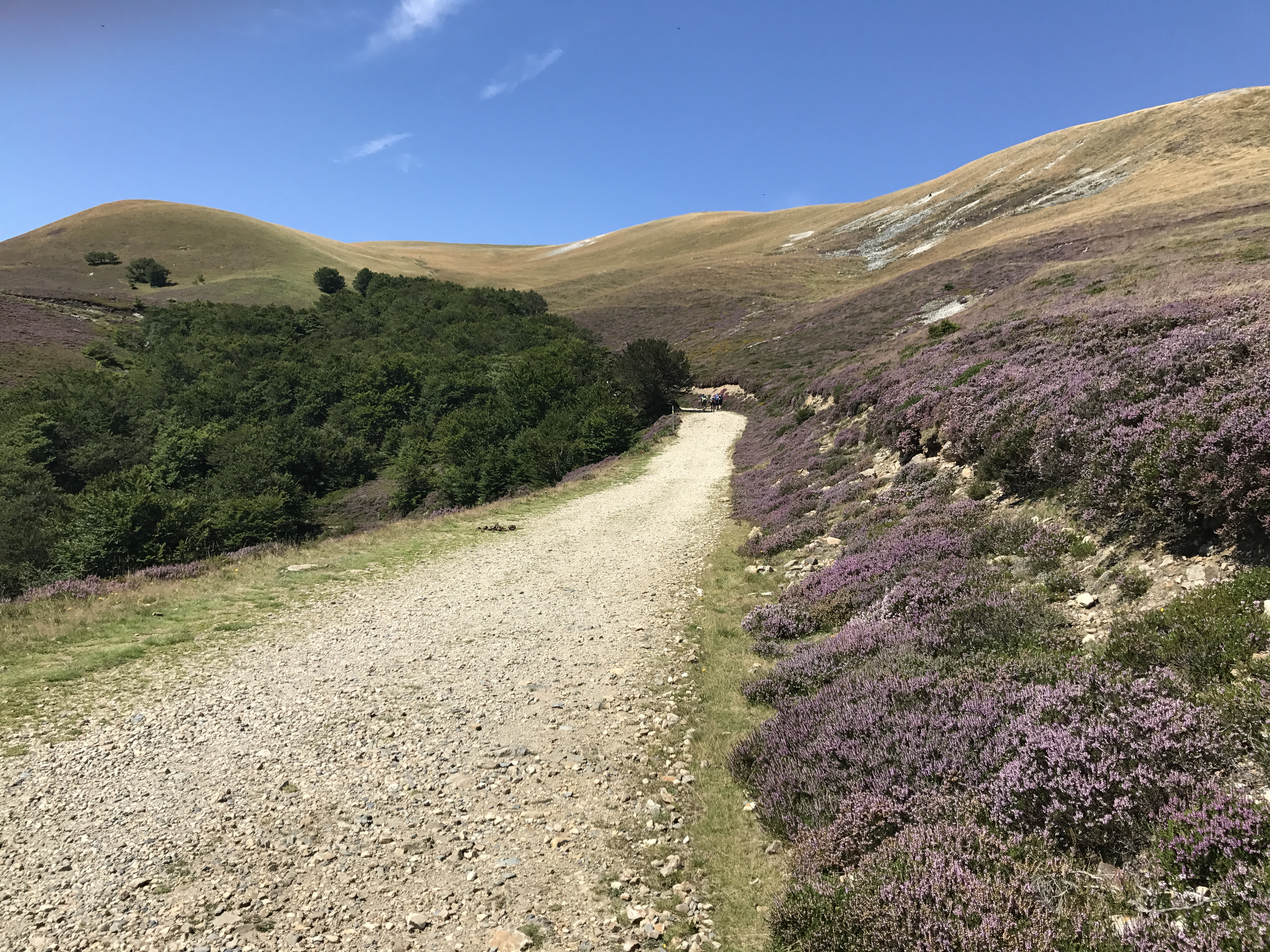 Nun haben wir die erste Etappe auf dem Jakobsweg hinter uns. Gestern Abend erwischten wir in Saint Jean Pied de Port ein Hotelzimmer, das viel Verwunderung auslöste – nicht nur wir wunderten uns darüber, dass es zu unserem Zimmer keinen Schlüssel gab und der Haupteingang um 22.00 Uhr jeden Tag schließt, sondern auch die Hotelbesitzerin war etwas überrrascht, dass wir uns keine Bettwäsche mitgebracht hatten. Wir kippten also schnell in einem teuren und schlechten Restaurant jeweils eine Flasche Wein in uns hinein (aus Verzweiflung und als Auftakt zu unserer Pilgerschaft), um bis 22.00 Uhr im Hotel sein zu können. Nach einer ruhigen Nacht und einem miserablen Frühstück um 6.00 duschten wir und trockneten uns mit einem Bettbezug ab. Dann gingen wir los: Saint Jean Pied de Port – Roncesvalles (25 km) – eine sehr schöne auch wenn ziemlich bergige Etappe. Um 14 Uhr in Roncesvalles angekommen, hatten wir Glück. Wir bekamen sofort ein schönes Zimmer mit eigenem Bad, Bettwäsche und mit Handtüchern. Für den Preis, den wir bezahlen mussten, hat eigentlich jeder sofort Glück, dachten wir an der Rezeption.