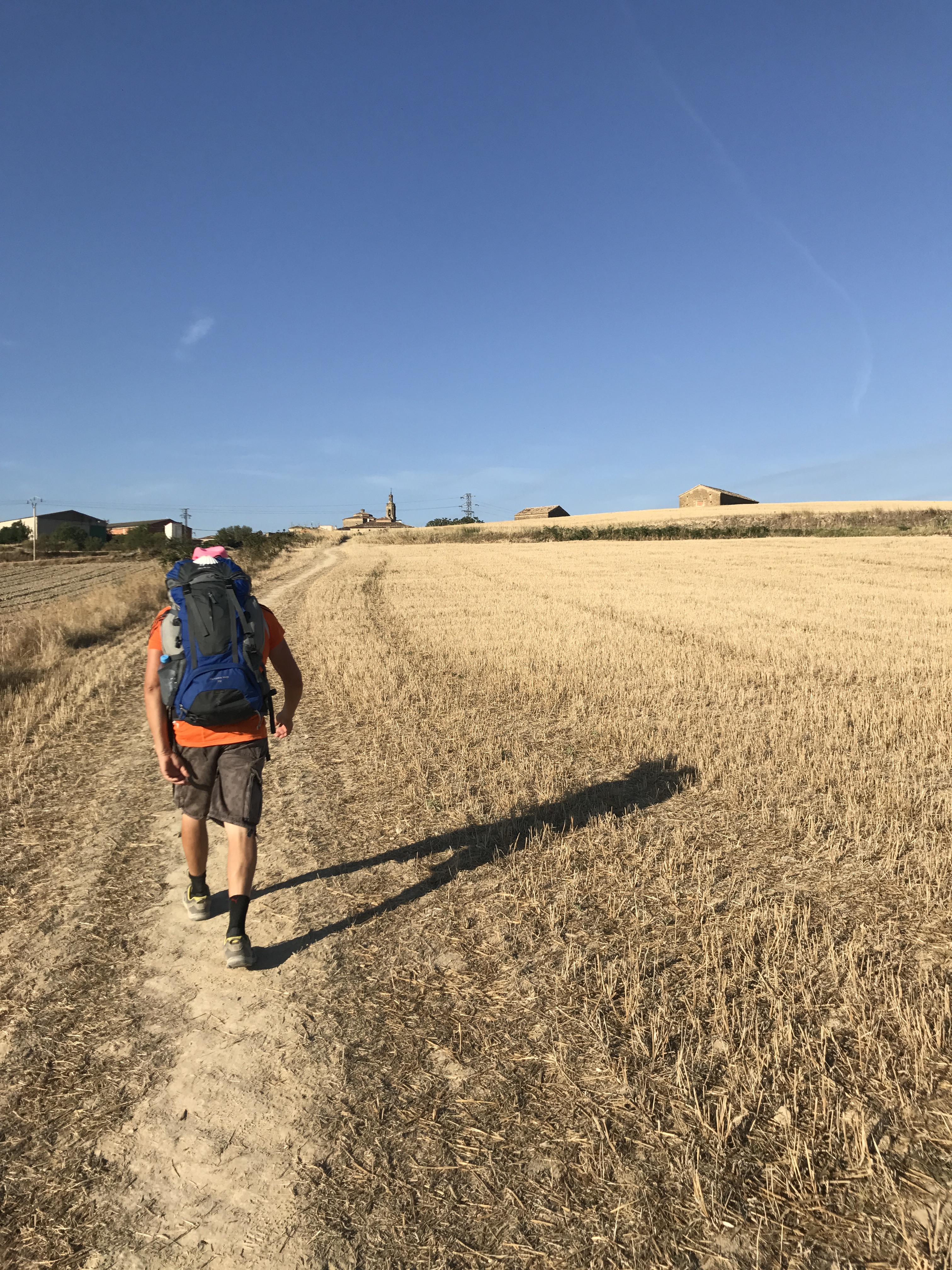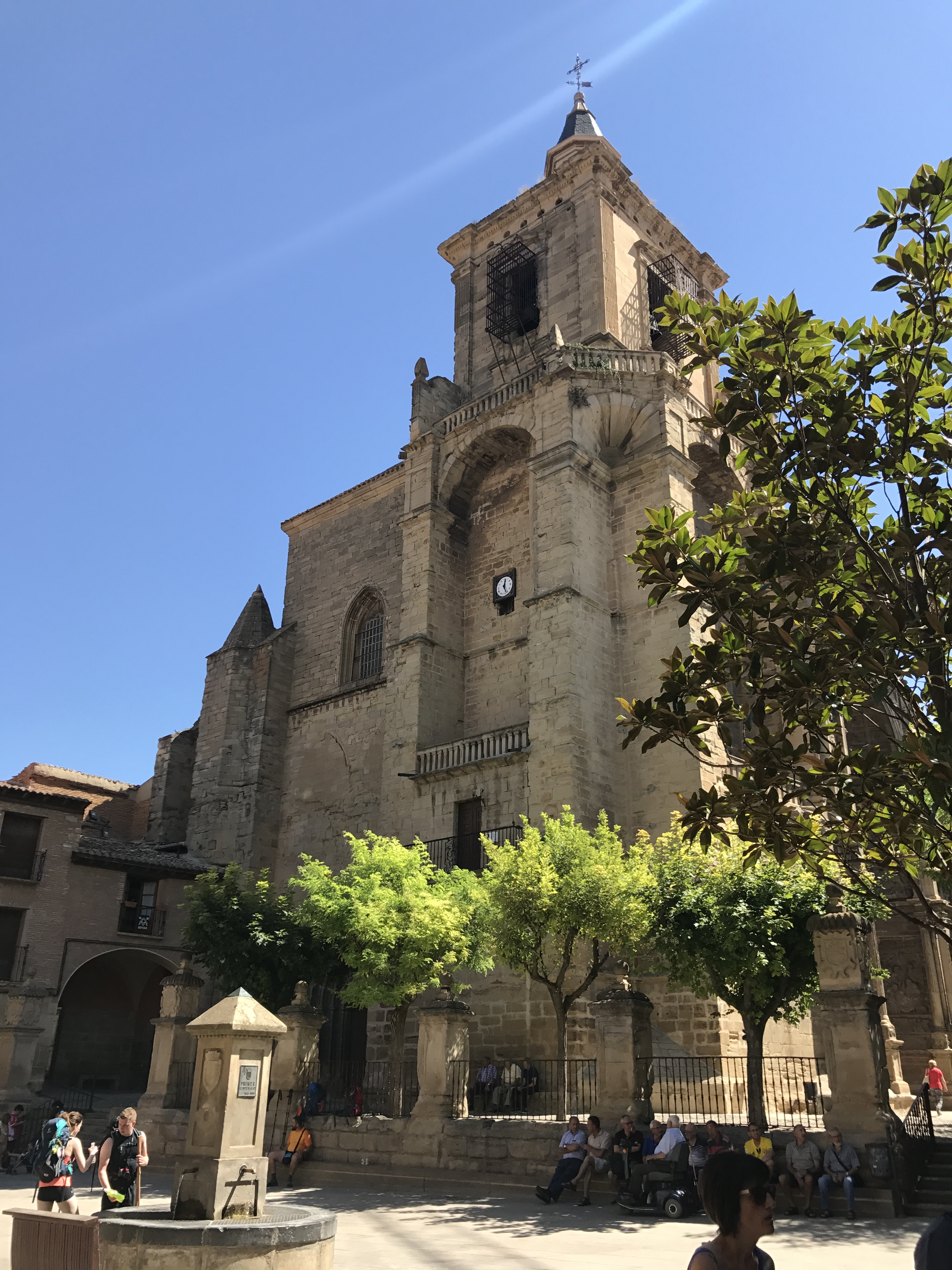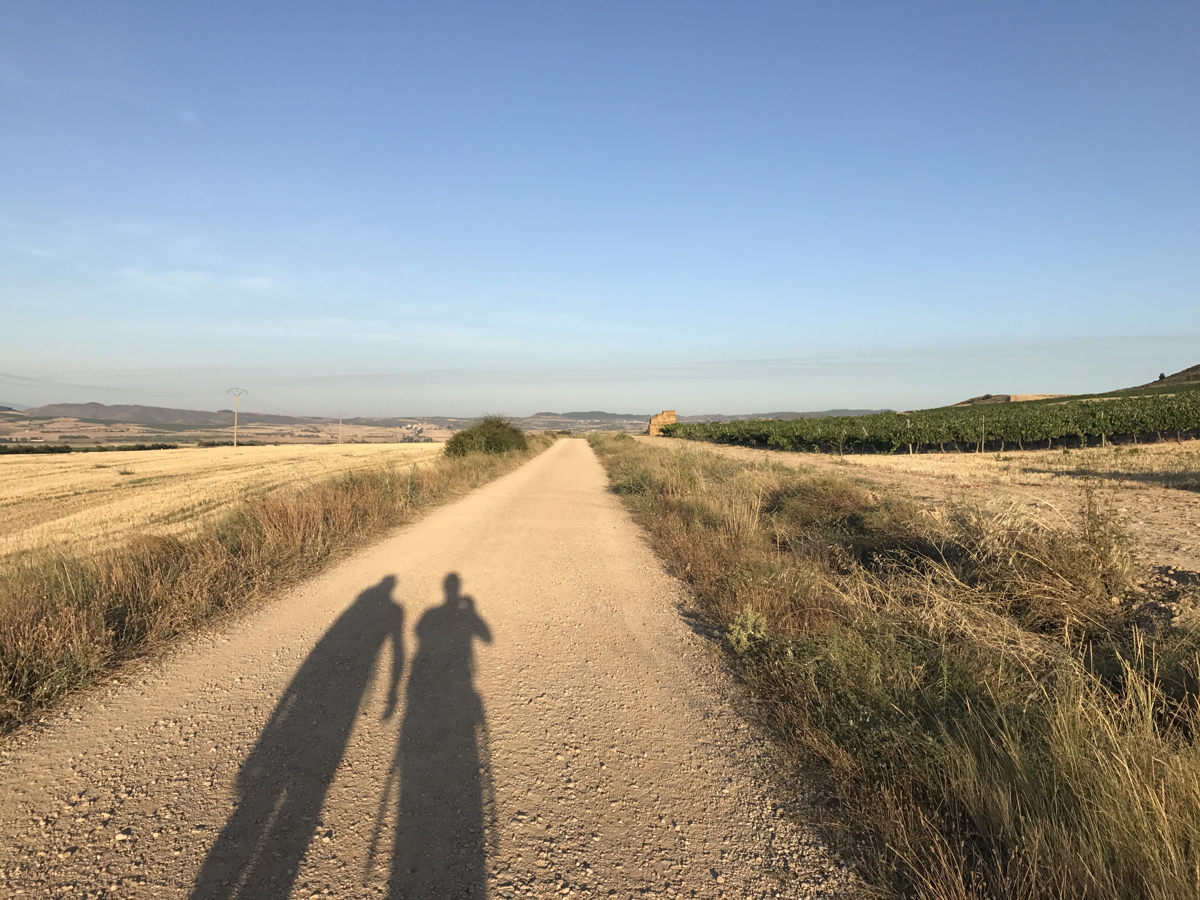 “Du bist, wer ich war und du wirst, wer ich bin.”, las ich am Tor eines Friedhofs, nachdem wir Los Arcos verlassen hatten. Immer noch macht mir meine Vergänglichkeit Angst und deshalb war ich heute besonders dankbar, leben zu können und gesund zu sein. Gestern Abend versprach uns unser Wirt, dass nach dem Wein, den er uns serviert hatte, wir drei Jakobswege laufen könnten. Ich lachte nur und dachte, dass ich ihn heute auf dem Weg wegen des Weines verfluchen werde. Der Wirt versprach jedoch nichts, was er nicht halten konnte. Wir liefen heute unbeschwerlich leicht und erreichten unser Ziel Logroño (28 km) nach sieben Stunden. Ich überlegte intensiv über den Spruch am Tor des Friedhofs und dachte an den Tod vieler Pilger, deren Gräber am Wege zu sehen sind. Hier auf dem Jakobsweg endete ihr Leben. Sie erreichten Santiago nicht. Heute sahen wir ein Grab einer 19-jährigen Frau, die 2016 zwischen Los Arcos und Logroño verstorben war. Dieser Weg ist nicht nur ein Prosit auf das Leben, sondern auch ein Memento mori. Dieser Weg ist wie das Leben selbst; viele laufen weiter, viele müssen stehen bleiben, manche kehren um und manche verlieren den Weg.