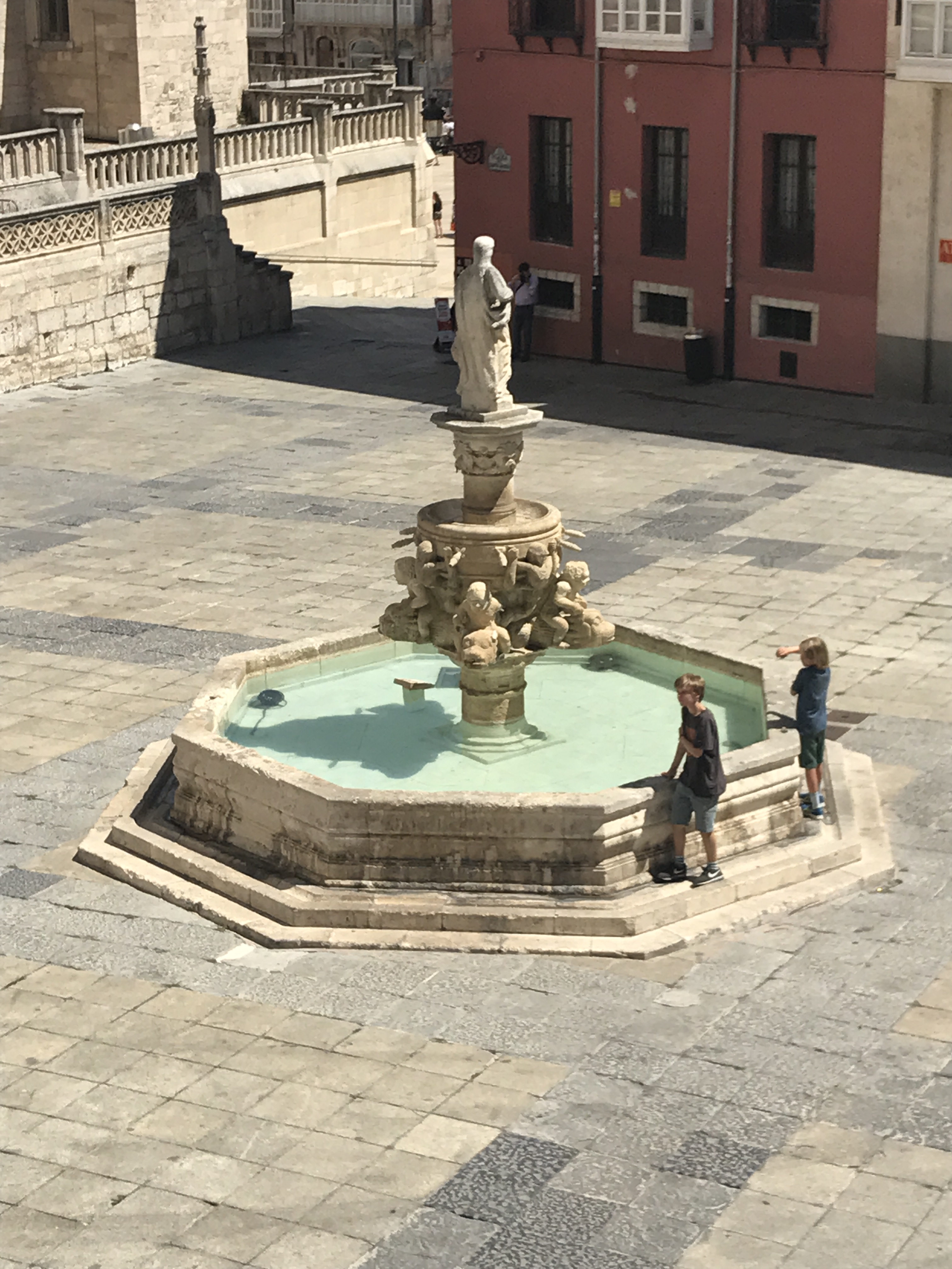 In Burgos verzichteten wir darauf, in die Kathedrale zu gehen, da uns der Eintrittspreis für ein Gotteshaus zu hoch schien. Nun sind wir in einem eher armen Dorf (Tardajos) – nach 38 km Fußmarsch ziemlich platt. (11. Etappe)