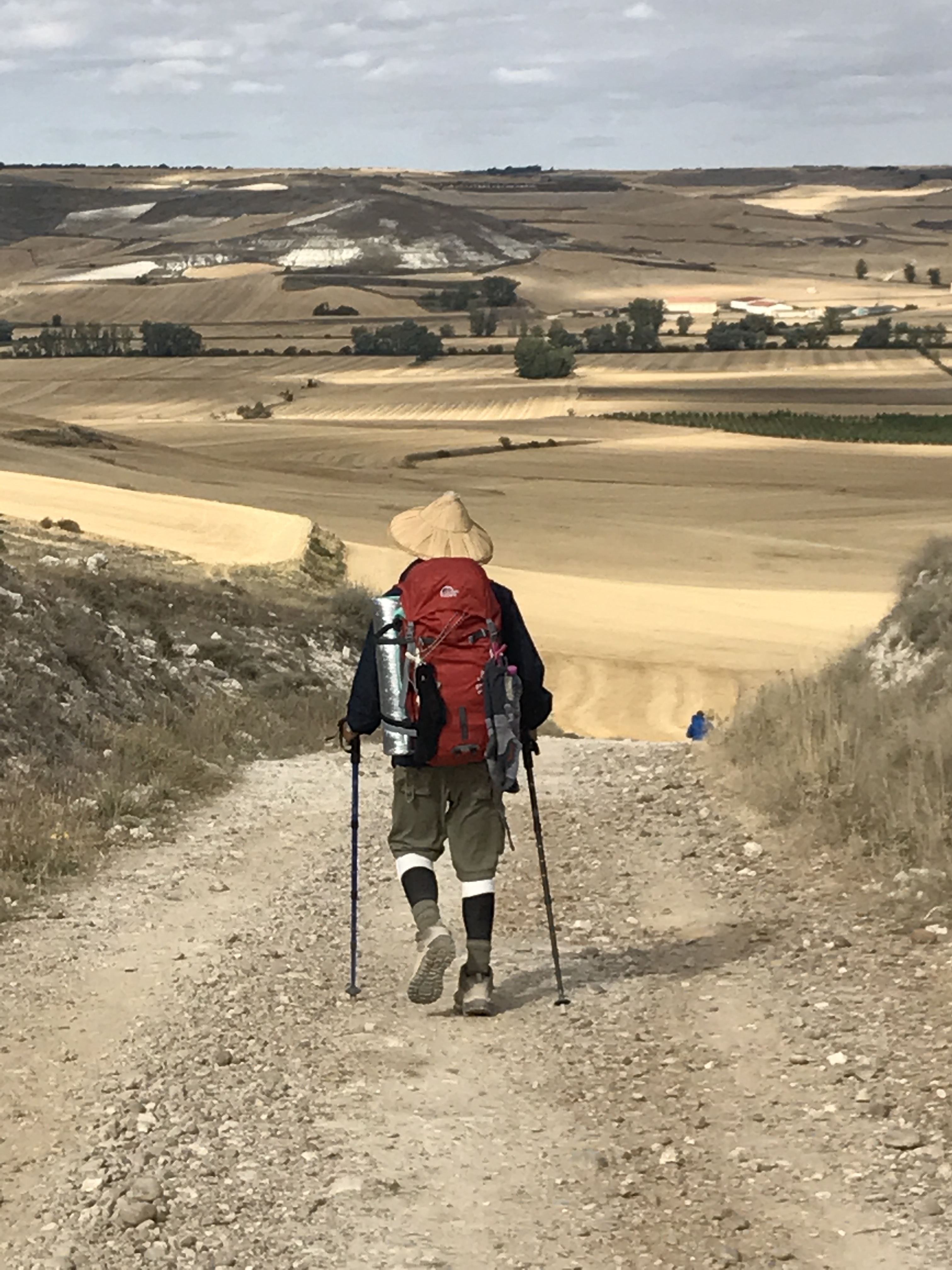 Heribert verließ Daxlanden 1852 – in der Zeit, als die Bauernaufstände in Baden vorbei waren. Heribert, ein etwa 19-jähriger junger Mann, sehr früh verwaist, fast besitzlos, ertrug nicht mehr das feudale System auf dem Land, das immer noch viele Leute – reiche und arme zum Selbsmord führte. Jede neue Krise, jede Missernte und jedes Hochwasser nahmen den Menschen, was sie besessen hatten und brachte über das badische Ländle viele Tränen und Verzweiflung. Der damals noch sehr harte Winter tötete die Besitzlosen und wenn er sie nicht tötete, dann peinigte er sie, da er sie von der Straße aus in die warmen Stuben der Reichen schauen ließ. Heribert wollte nicht in den Osten zu den Habsburgern, weil er gehört hatte, dass dort das Leben auch nicht besser sei. Es zog ihn in den Süden. So hörte er, dass viele sein Glück auf dem Jakobsweg gefunden hatten. Er hörte jedoch auch, dass der Weg gefährlich und sehr beschwerlich sei. Er packte sein Bündel und marschierte los, zuerst durch die Rheinwiesen und dann rüber nach Frankreich. Man weiß heute nicht, wie er Frankreich durchquerte. Seine Spur taucht erst am achtundneunzigsten Tag seiner Wanderung auf. Völlig enkräftet, mit blutigem Oberkörper und eiternden Füßen fiel er zu Boden vor dem Pilgerkrankenhaus vom Kloster San Antón, dessen Ruine wir noch heute bewundern können. Hier, etwa dreißig Minuten Fußmarsch von Castrogeritz, lebte, weil sie ebenfalls als Waisenkind keine andere Möglichkeit hatte, die junge Ordensschwester Mariana. Sie pflegte die kranken Pilger mit ihrer ganzen Hingabe. Ihr Glaube an das Göttliche jedoch war voller Zweifel. Tag für Tag wusch sie die verwundeten Körper, sah viele Pilger sterben und hörte den vielen Geschichten über Elend und verschiedene Schlachten auf unserem Kontinent zu. Heribert, verwundet und fiebernd schlief ganze sieben Tage. Als er seine Augen wieder öffnete, sah er an seinem Bett Mariana sitzen. Und dann sprachen sie miteinander jeden Abend. Wir wissen nicht, was zwischen Heribert und Mariana geschah. Wir wissen nur, dass Heribert seine Pilgerschaft nicht weiter fortsetzte und Mariana erkrankte selbst und starb. Auf diesem Weg gab es und gibt es auch heute noch seit hunderten von Jahren unzählige Geschichten, die wir nicht mehr rekonstruieren können. Sie bleiben für immer der Landschaft, die den Weg umschließt, anvertraut. Sie bleiben immer verschlossen in den Mauern der Klöster, der Kappelen und der Kirchen, die den Weg weisen. Auch der heutige Pilger erzählt immer eine andere Geschichte über seine Reise; die wahre Geschichte behält er für sich.