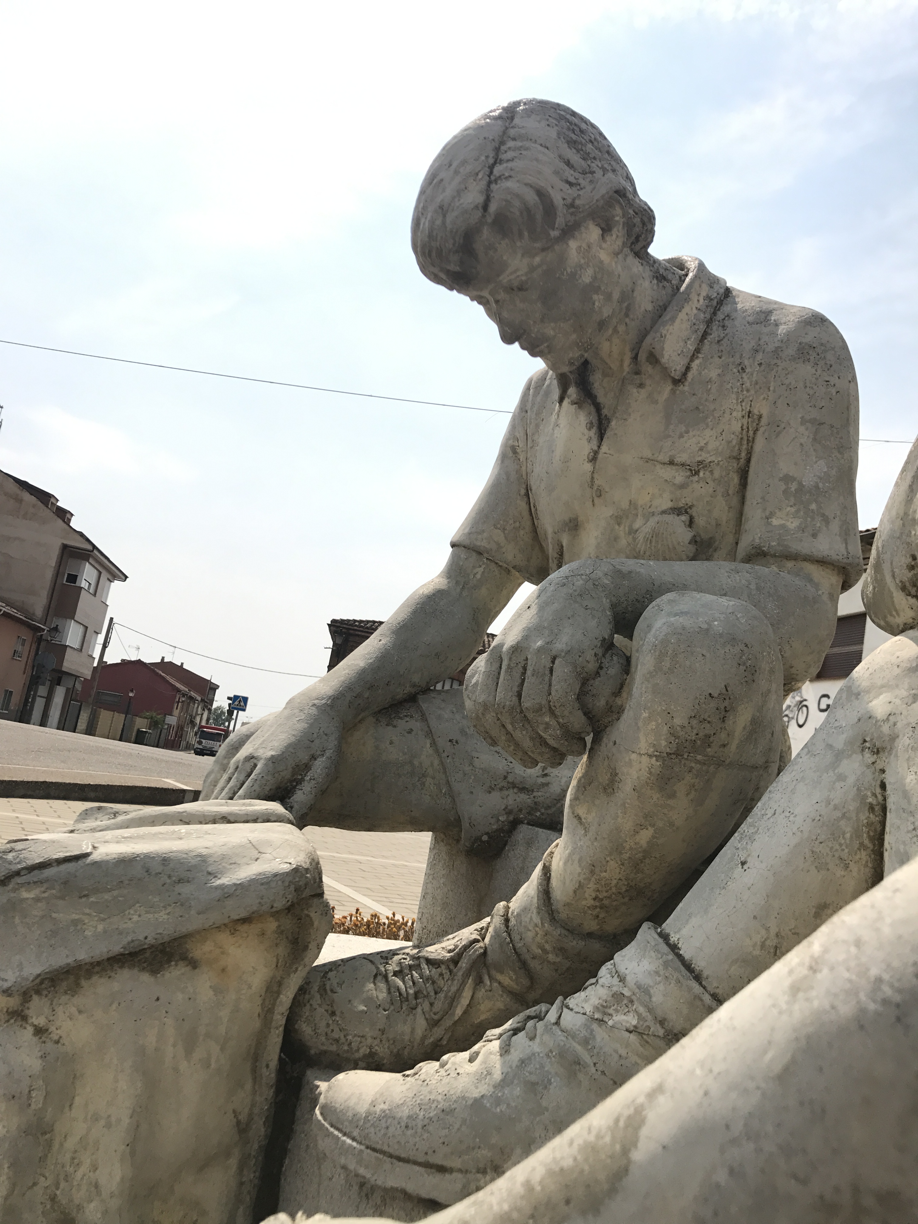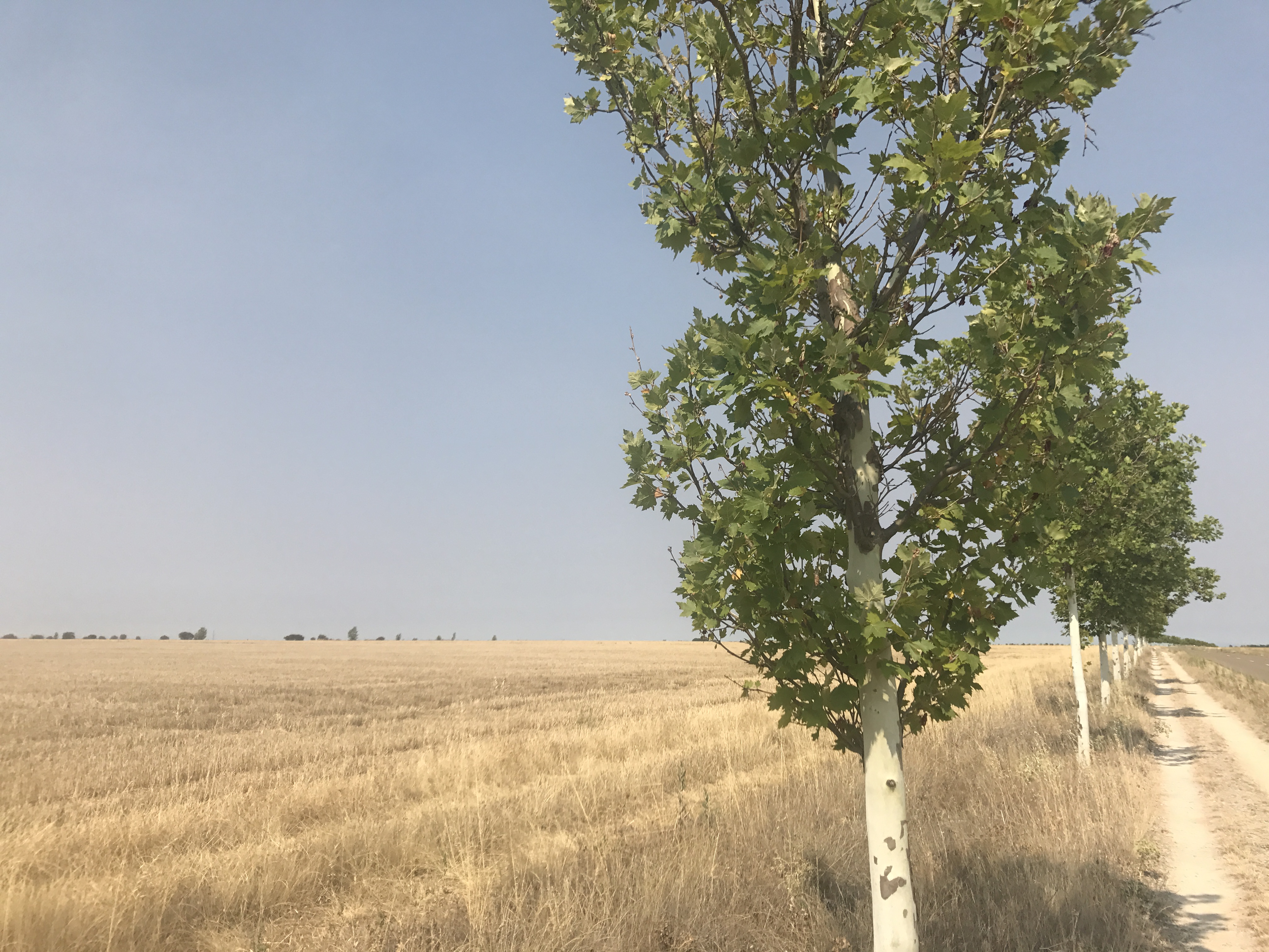 Und dann erreichst du den fünfundzwanzigsten Kilometer und es geht kaum noch etwas. Dein Rücken wird magisch vom Boden angezogen; die Beine drohen einzuknicken und die Fußsohlen sind nicht mehr elastisch – sie biegen sich nicht mehr, sie schlagen auf den Weg mit ihrer ganzen Fläche auf einmal auf. Alle Pilger scheinen schon an ihrem Ziel zu sein, du bist allein. Auf der linken Seite des Weges steht jede zehn Meter ein Platanenbaum, du gehst an einem einzigen Tag an 3700 Platanenbäumen vorbei und denkst an deine Zeit in Amsterdam, als du nach einer ordentlichen Portion Marihuana eine Allee entlang gingst und es schien dir, als ob die Bäume nie aufhören vorbeizuziehen. Du läufst sorglos, dein Kopf ist leer, der Körper dient dir nicht mehr und dein Ziel liegt noch zwölf Kilometer vor dir. Du weißt, du wirst ankommen, vielleicht nur deshalb läufst du weiter, auch wenn du eigentlich keinen Schritt mehr machen kannst.