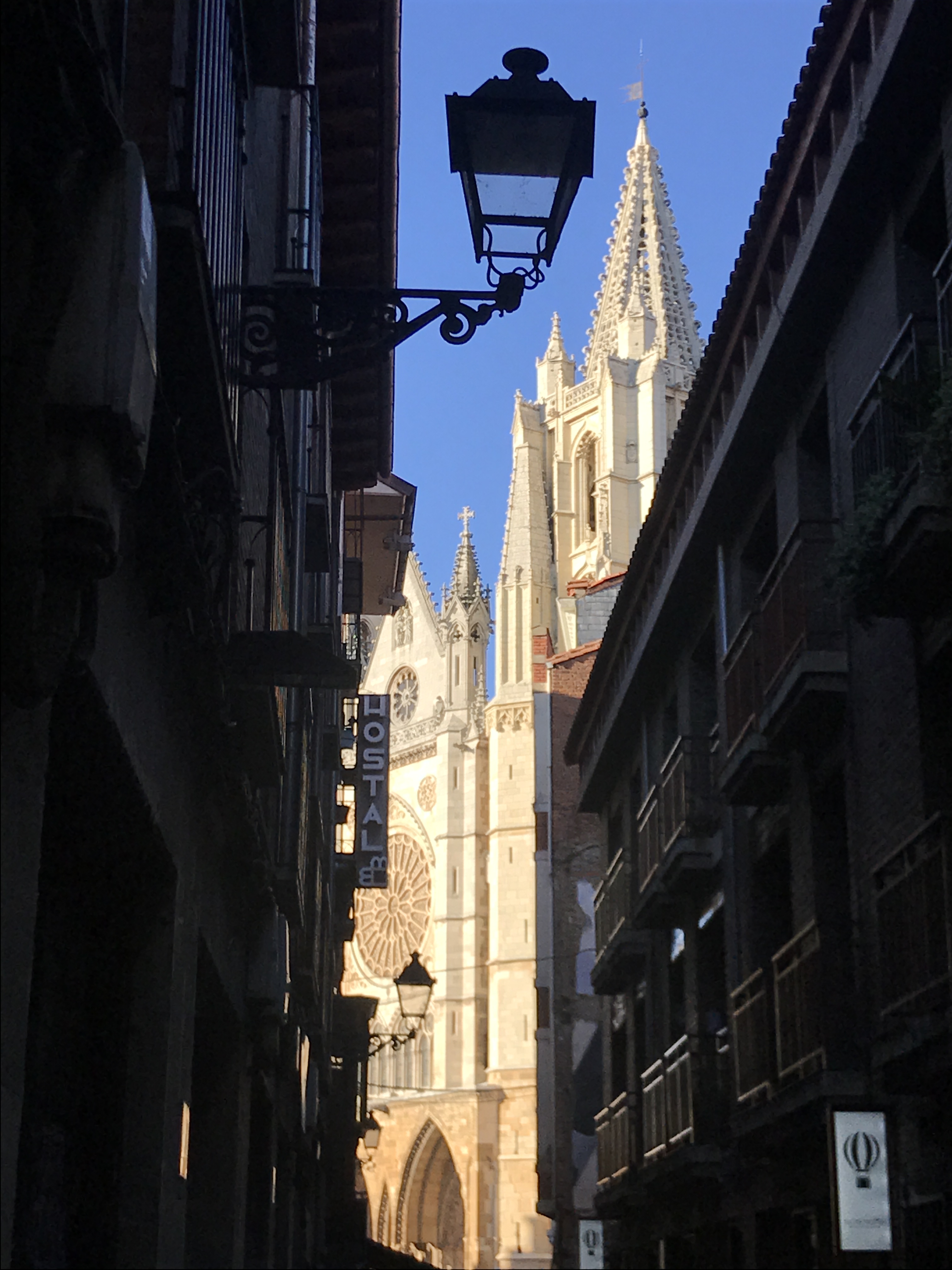 Wir wanderten heute 24 km aus León nach San Martín del Camino. Langsam wird die Landschaft wieder grüner. Wir nähern uns den Bergen, wir nähern uns Galizien. Nach Santiago sind es noch 295 km. Heute hatte wir Glück. Unsere Herberge besteht aus mehreren Häuschen und wir bekamen das hinterste Häuschen in einem großen Garten. Wir genießen unser Glück.