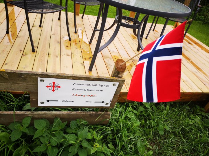 Etappe 6: Hamar – Moelv (33 km)Beim Frühstück regnete es in Strömen. Es sah sehr schlecht aus. Als wir aber um 9.30 Uhr aufbrachen, ließ der Regen nach. Wir konnten bei idealem Wanderwetter unser Tagesziel erreichen. Heute übernachten wir in einer Hütte mit eigenem Badezimmer auf dem Campingplatz Steinvik. Morgen laufen wir nach Lillehammer und feiern den Geburtstag von Matthias.