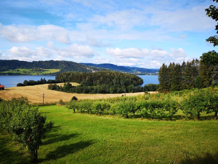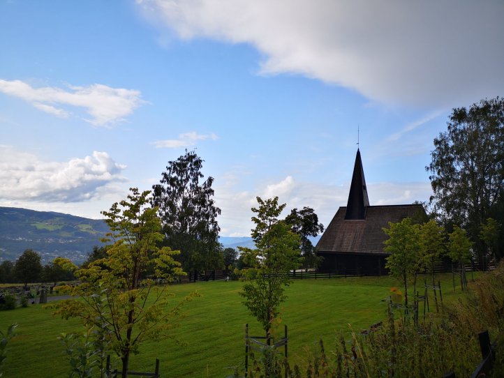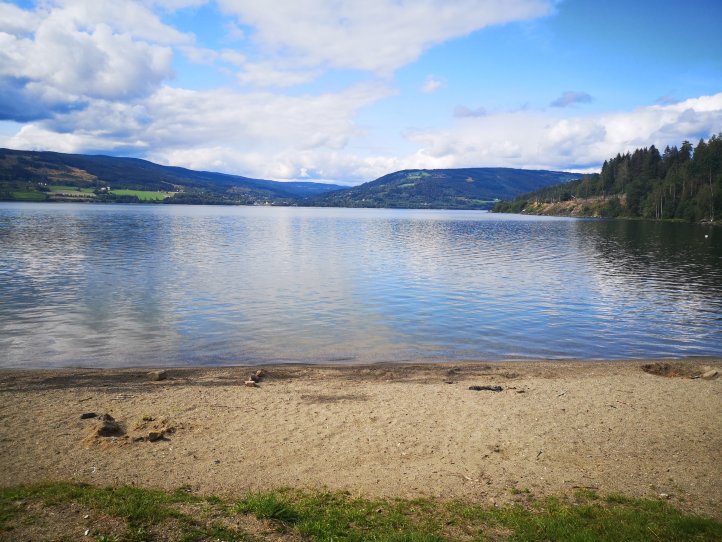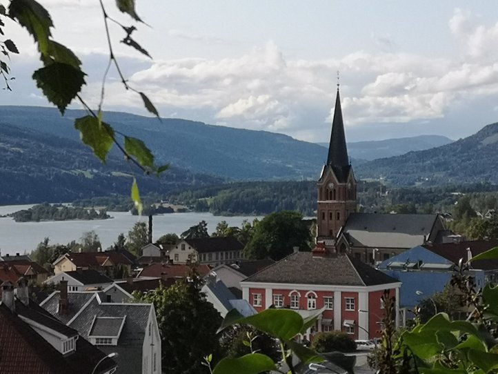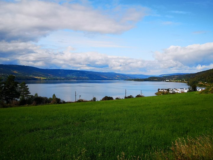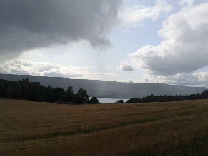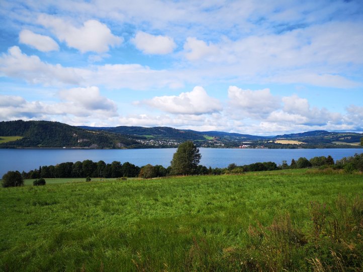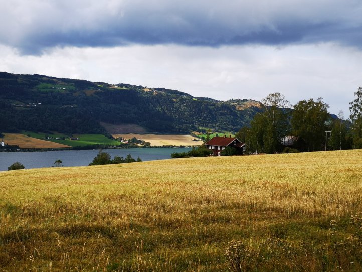 Diese Etappe war nicht so anstrengend, auch wenn die letzten 10 km schon in die Knochen gingen. Mit dieser Etappe haben wir jetzt den Mjøsasee fast hinter uns und wir machen einen Pausentag in Lillehammer. Gestern verlor Matthias seinen Hut; oder besser gesagt hat er ihn wegen des Überangebots an Schlemmereien in einer Bäckerei einfach liegen lassen. Nun ja, da kriegte er heute zu seinem Geburtstag eine sündhaft teure Mütze. Wir hatten gestern und heute wunderbares Wetter. Lillehammer gefällt uns von allen Städten bis jetzt am besten: Eine kleine gemütliche und aufgeräumte Stadt am See am Fuße vom Gudbrandsdal. Heute waren wir im Museum von Sigrid Undset, über die ich morgen versuche zu schreiben; dann von einem seit 1734 in Familienbesitz geführten Bauernhof Skåden gård.