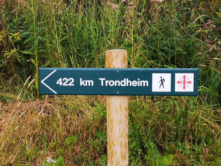 Die Menschen in Norwegen gehören laut Umfrage zu den glücklichsten Bewohnern auf diesem Planeten. Schon die norwegische Sprache begab sich auf einen ganz anderen Weg als ihre germanischen Geschwister. Wenn der Norweger umarmt, dann aber richtig. Man bleibt minutenlang eingeklemmt (umarmen – å klemme). Er heiratet mit einem großen Hauch an Realitätssinn und schon bevor er zum Altar schreitet, weiß er, dass die Ehe nicht nur Honigschlecken bereit hält, sondern auch eine Prise Gift (heiraten – å gifte seg). Ist er einmal verheiratet – mit einer echt haarigen Gattin (die Gattin – ektefelle), schafft er sich einen Hund an, und dann lüftet er jeden Morgen seine Bettwäsche und auch seinen Hund (Gassi gehen – å lufte hunden), während die Gattin bereits einen Kuchen gebacken hat, der genauso schmeckt wie er heißt (der Kuchen – kaken). Er ist engagiert, betätigt sich ehrenamtlich soweit er kann und kümmert sich vorbildlich um die Ausgestoßenen, um die, die den richtigen Weg verfehlten (das Gefängnis – kriminalomsorgen). Wenn er dann irgendwann alt wird, dann konsequent (alt – gammel). Ich habe zwar nicht mitbekommen, ob der Norweger viel schimpft, aber so manche Präteritumform eines Verbes will ich auf meiner Reise nicht aussprechen müssen (bekommen, bekam, hat bekommen – få, fikk, fått). Und übrigens kann man sich hier in aller Öffentlichkeit an den Hoden kratzen (Kopf – hode). Ja gut, der Kopfsalat ist dann tatsächlich „hodesalat“ und das Kopfkissen „hodepute“ (Ich kann mir wirklich bildlich so eine Hodepute vorstellen. Versucht doch mal eine gamle Hodepute aufzuschütteln und dann zu malen). Für Geld interressiert sich der Norweger kaum. Einen Geldschein nennt er einfach „lappen“ (der 1000 Kronen Schein – 1000 kroner lappen). Nun ja, ich kämpfe mich weiter durch und mit dieser interessanten Sprache weiter vor. Im Moment verweile ich schon zehn Tage in Norwegen und nur langsam verdränge ich die englische Sprache aus dem Touristenalltag der Norweger. Und manchmal füge ich dem norwegischen Wort für Pilgerweg (Pilegrimsleden) ein „i“ zwischen das „e“ und „d“ ein.