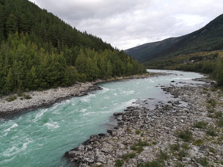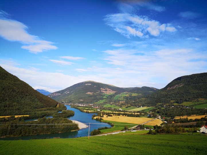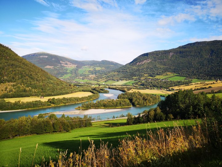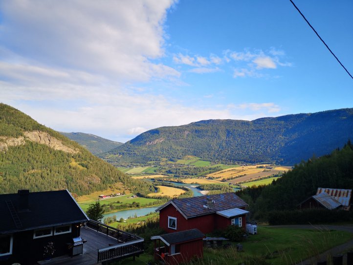 Eine sehr abwechslungreiche Etappe bei Sonnenschein. Da wir gut geschlafen haben, sind wir schon um 6.30 Uhr losgelaufen. Unsere Unterkunft versprach kulinarisch alles Erdenkliche. Nun der Koch ist krank, wurde uns gesagt und der nächste gesunde Koch hockt 11 km entfernt in Otta. Also zurück in den Supermarkt. (5 km plus also) So ein wenig schlampig ist hier einiges. Die Steckdose in der Küche ist auch nicht richtig fest und der Duschvorhang ist uns nach einer Minute samt Schiene runtergefallen. Tourismuswüste Norwegen? Morgen wird es ernst, keine Unterkuft auf dem Weg. Hoffentlich hält das Wetter, damit die Wildnis nicht so wild erscheint.