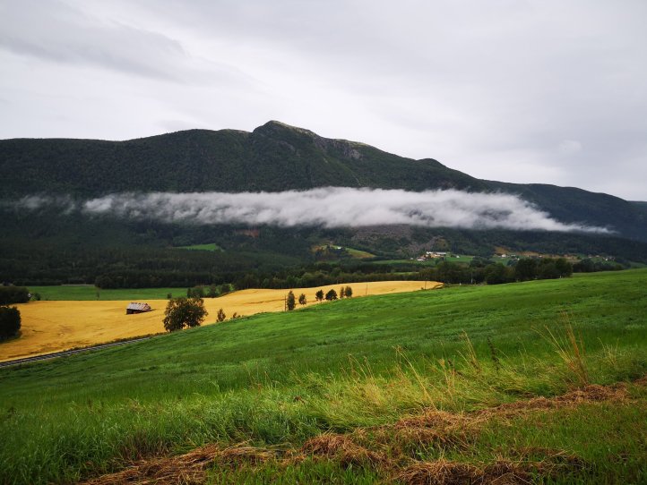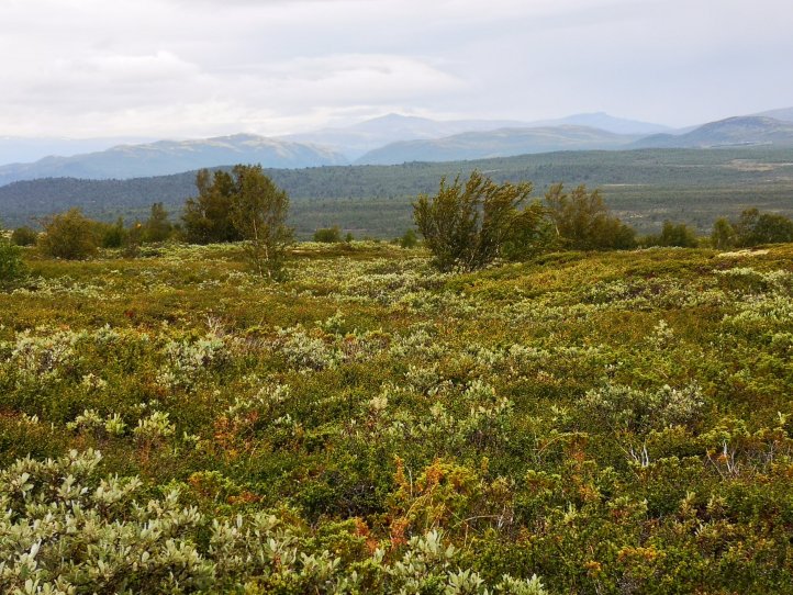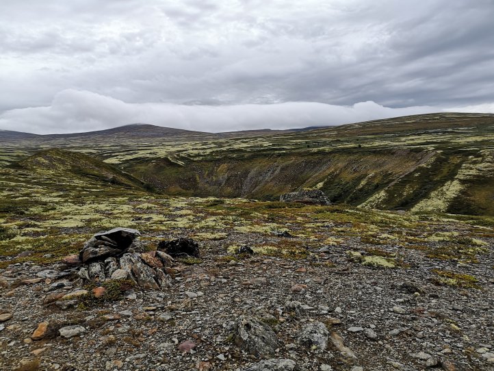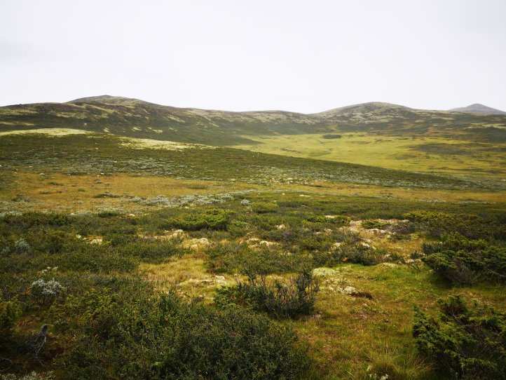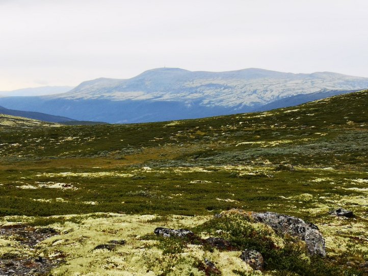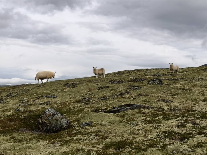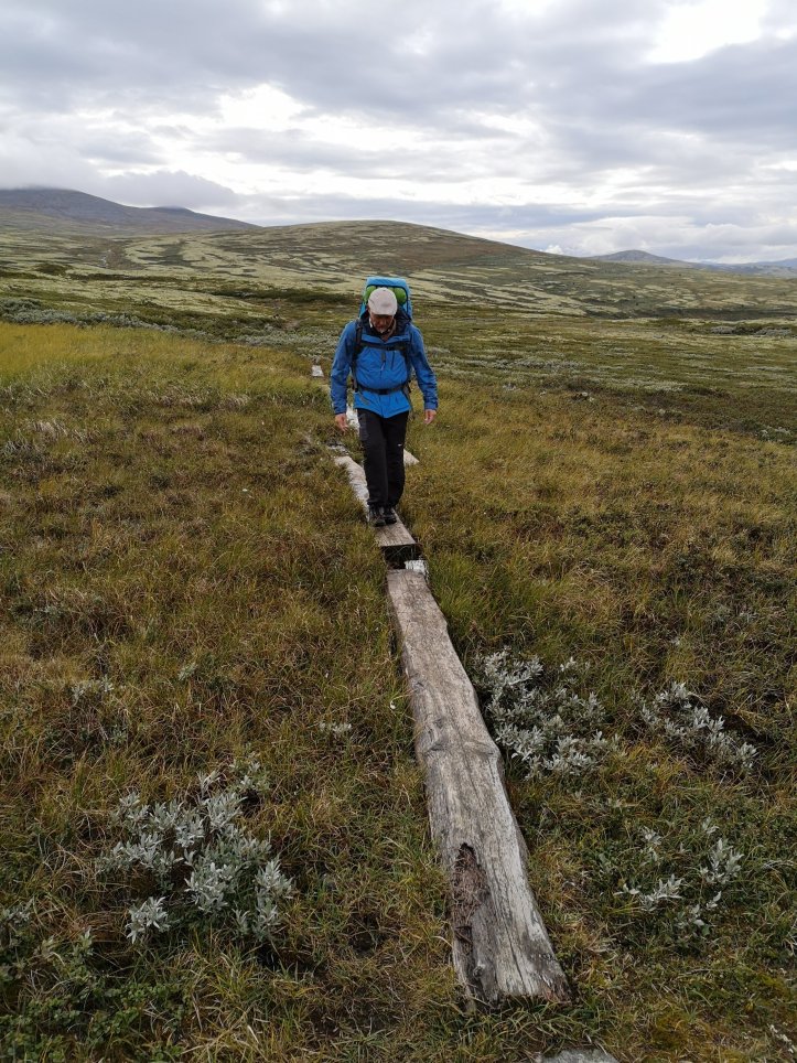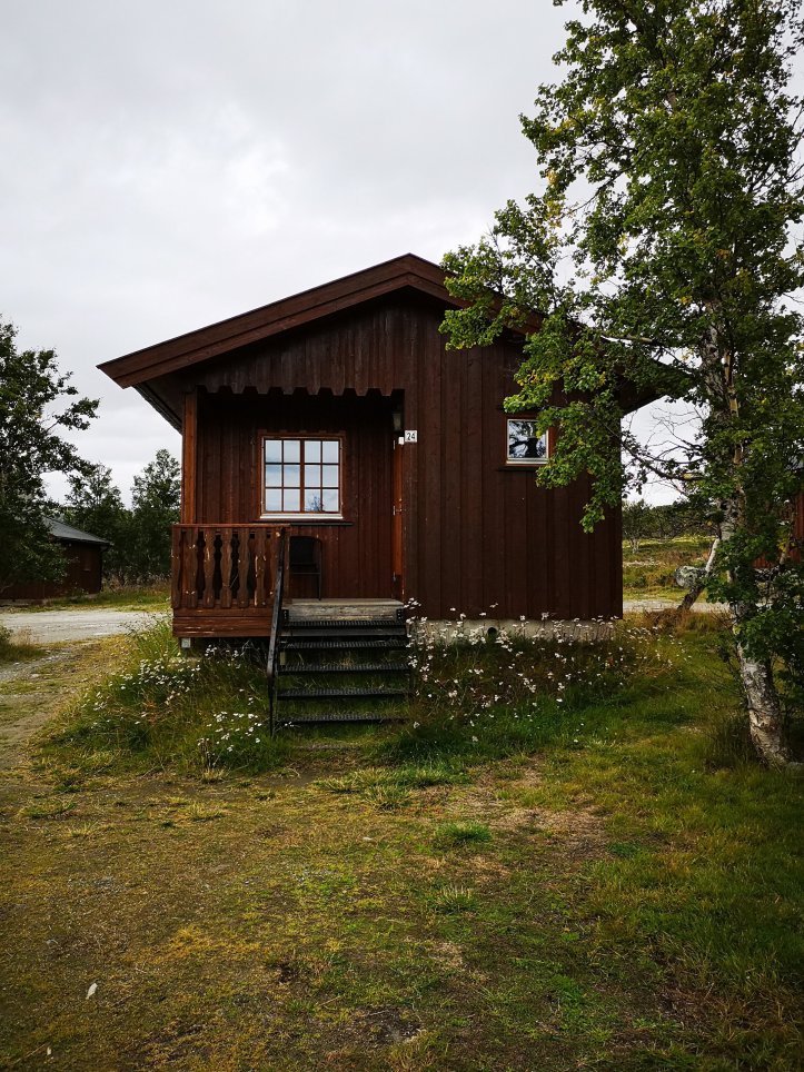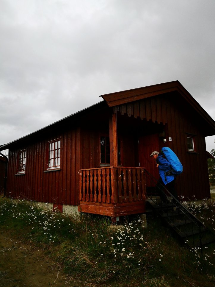 Wir stehen wirklich vor geschlossenen Kirchen. Nun ja. Wir liefen heute über der Baumgrenze im Dovrefjell Nationalpark. Die Hoffnung auf ein kulinarisches Ende der Etappe ging mit jedem Kilometer flöten. Es kam – Gott sei Dank – anders. Eine toll eingerichte Hütte und ein Restaurant mit gutem Essen. Woher sie das Essen herhaben, ist mir ein Rätsel. Ich war nicht so gut drauf heute. Es regnete leicht und es war alles grau. Trotzdem war diese Etappe unvergesslich. Auch diese Einöde hat ihren Charme.