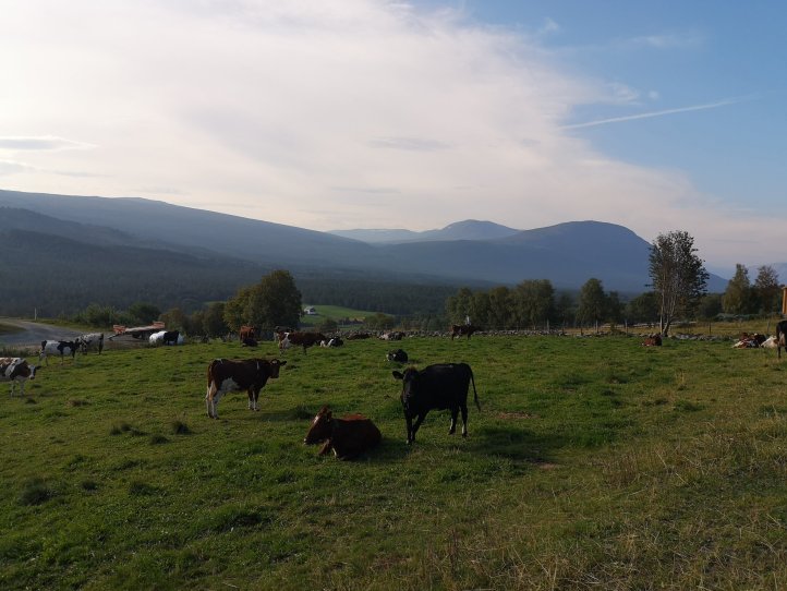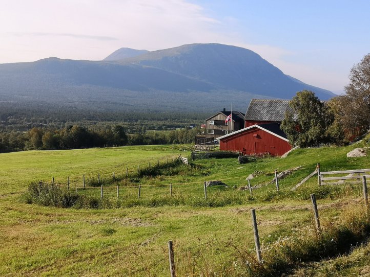 Plötzlich platzt ein etwas von sich überzeugter Herr in den gemütlichen Frühstücksraum mit brennendem Feuer im Kaminofen, ein wenig vorlaut, selbstsicher und auf sein Recht, alles haben zu können, pochend. Er setzt sich zu uns an den Tisch, damit er eine arme Sau findet, der er von seinem tollen Urlaub in Norwegen erzählen kann. Er stellt auch Fragen, obwohl ihn unsere Antworten kaum interessieren. Er, der geile Bock auf dem Motorrad, bringt jeden Tag so unheimlich tolle Leistungen. Er erzählt von seinen irrelangen Fahrten durch die tollsten Schluchten und Wälder. Er schwärmt von den Gletschern, die er gesehen hat und von den Highlights Norwegens, die er mit seinem selbstverständlich besten und schnellsten Motorrad in nur kurzen Zeit erreichen kann. Und dann fragt er, was unsere Highlights auf dem Pilgerweg sind… Wir geben ihm keine Antwort, versuchen die Frage zu umgehen, da wir in dem Moment kaum etwas sagen können. Wir haben weder den höchsten Berg bestiegen noch den größten Gletscher gesehen. Wir besitzten kein Auto und kein Motorrad und sind daher sehr langsam.